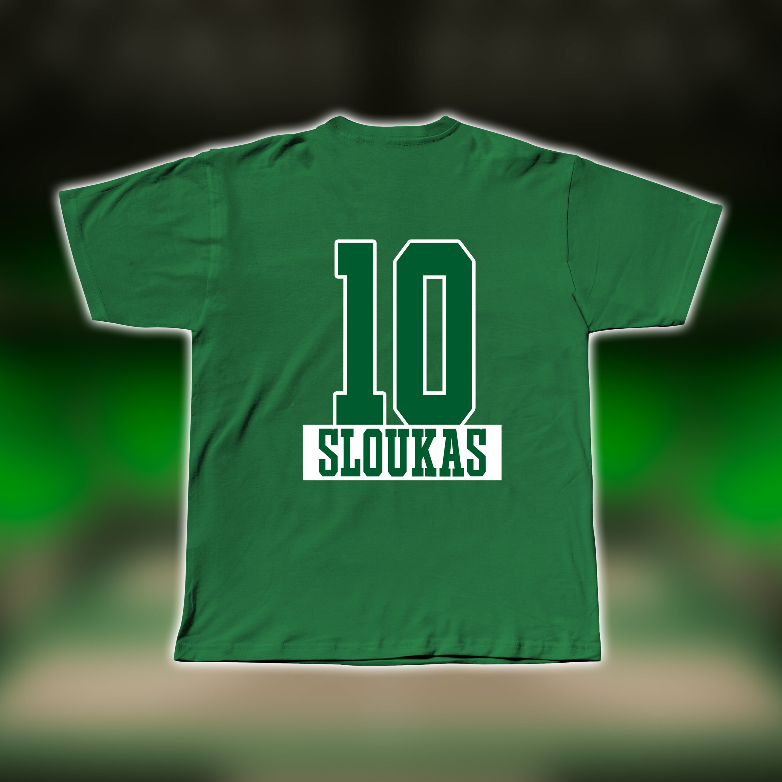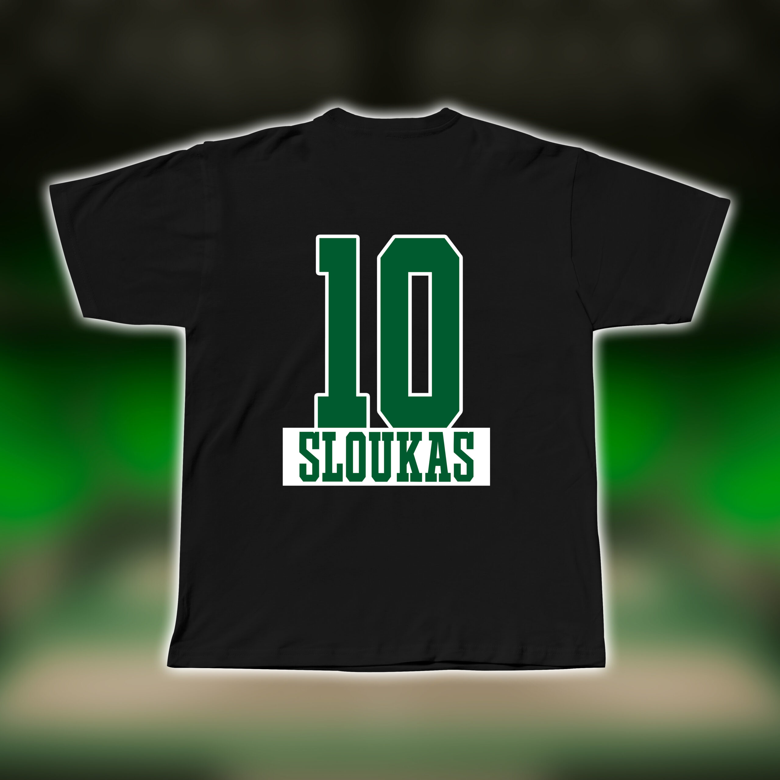 Μαύρο ή πράσινο premium t-shirt κατασκευασμένο από 100% ποιοτικό βαμβάκι (230 GSM) με τον αριθμό και το όνομα του αγαπημένου σου παίκτη, προσφέρει άνετη εφαρμογή και φυσική αίσθηση στο σώμα, είτε το φοράς στις εξέδρες του γηπέδου είτε στην καθημερινότητά σου.