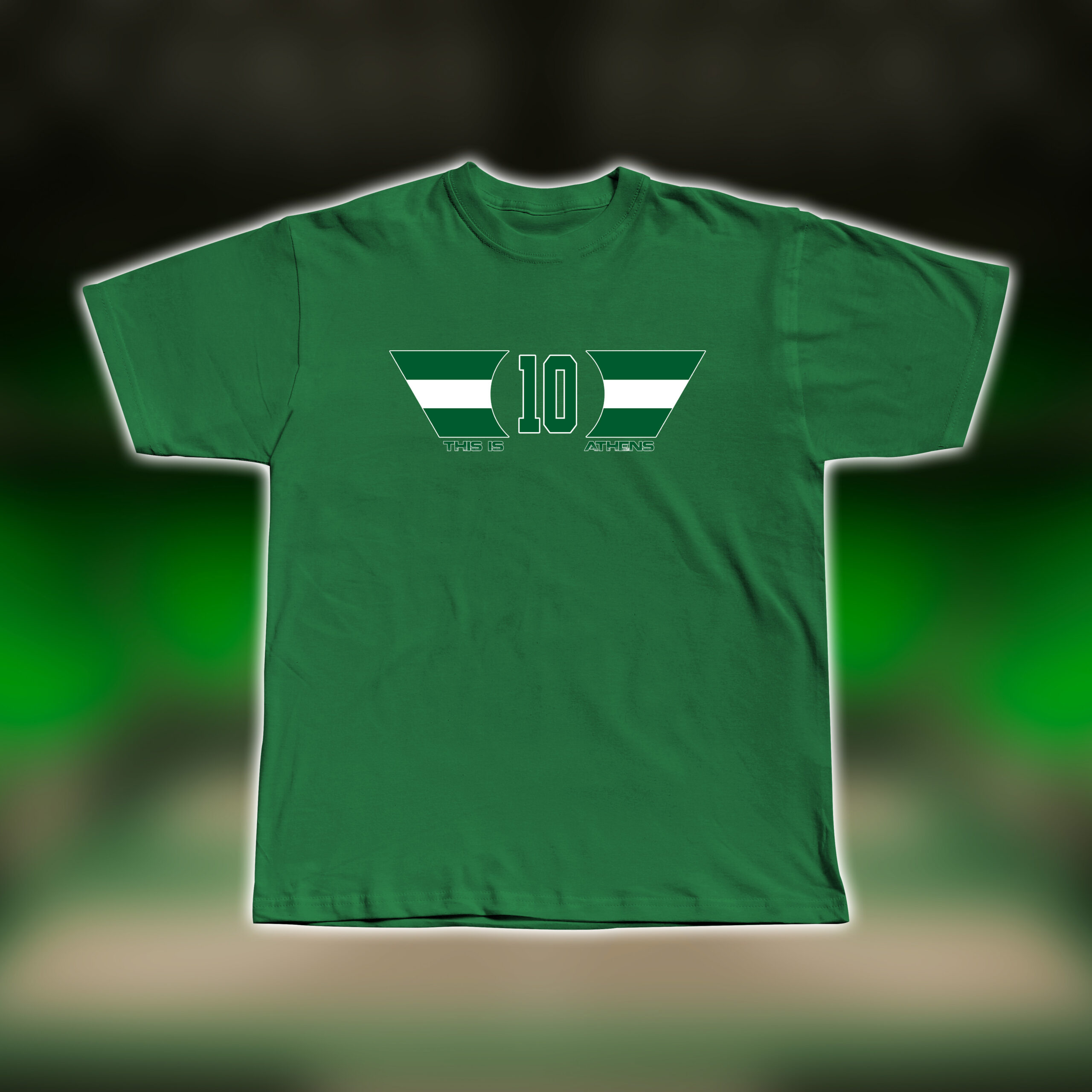 Μαύρο ή πράσινο t-shirt κατασκευασμένο από 100% ποιοτικό βαμβάκι, προσφέρει άνετη εφαρμογή και φυσική αίσθηση στο σώμα. Στο μπροστινό μέρος ξεχωρίζει το σχέδιο «This is Athens» και πίσω ο αριθμός και το όνομα του αγαπημένου σου παίκτη.