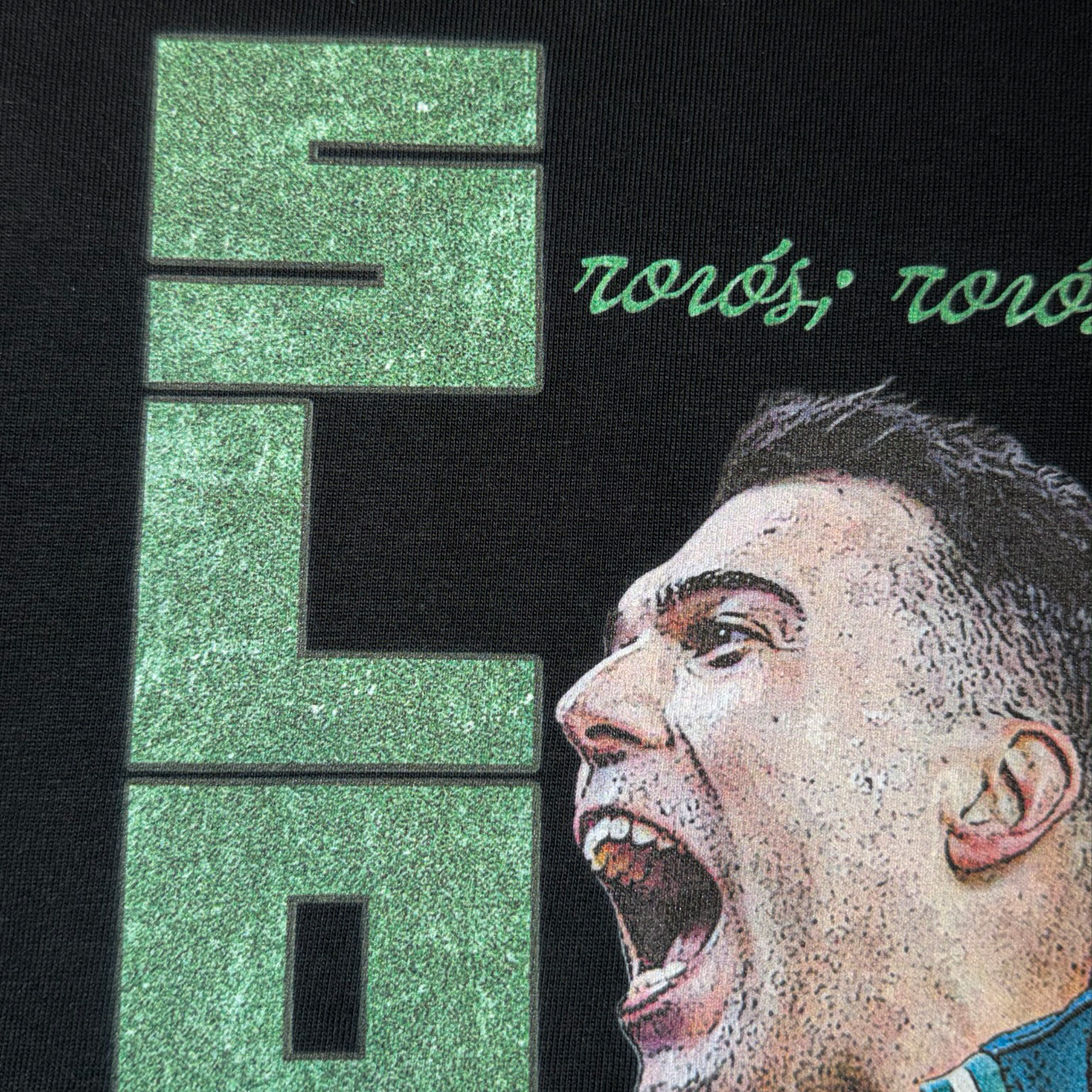 Μαύρο t-shirt κατασκευασμένο από 100% ποιοτικό βαμβάκι, προσφέρει άνετη εφαρμογή και φυσική αίσθηση στο σώμα. Στο μπροστινό μέρος ξεχωρίζει το σχέδιο με τον αγαπημένο σου παίκτη και είναι ιδανικό για να το φορέσεις είτε στις εξέδρες του γηπέδου είτε στην καθημερινότητά σου.