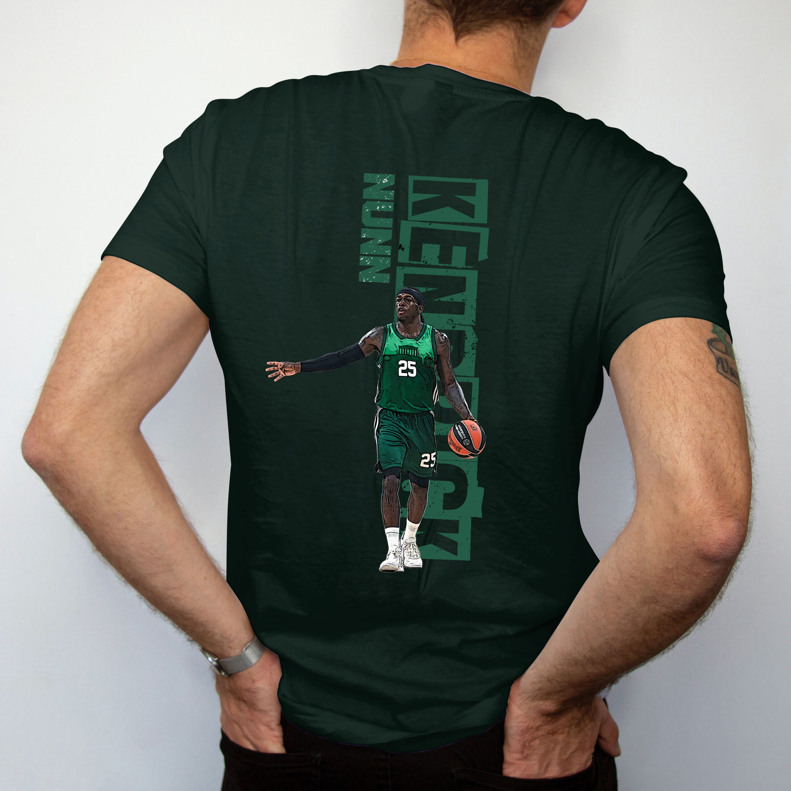 Σκούρο πράσινο t-shirt κατασκευασμένο από 100% ποιοτικό βαμβάκι, προσφέρει άνετη εφαρμογή και φυσική αίσθηση στο σώμα. Στο μπροστινό μέρος ξεχωρίζει το τριφύλλι και πίσω το σχέδιο του αγαπημένου σου παίκτη.